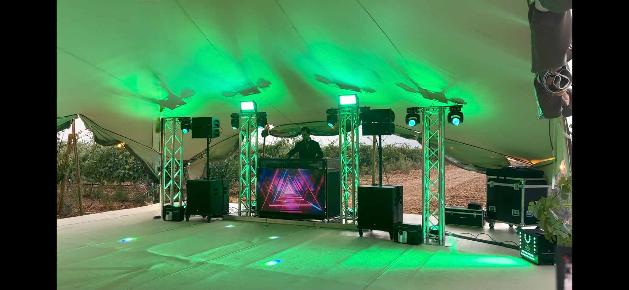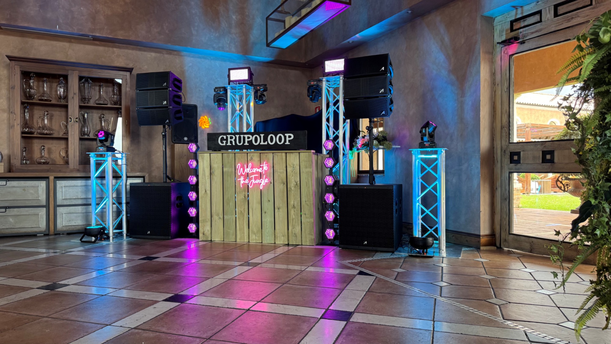 Ofrecemos una amplia gama de configuraciones, desde sistemas de sonido e iluminación elegantes y discretos, hasta espectaculares montajes con pantallas, efectos especiales y cabinas de DJ personalizadas.